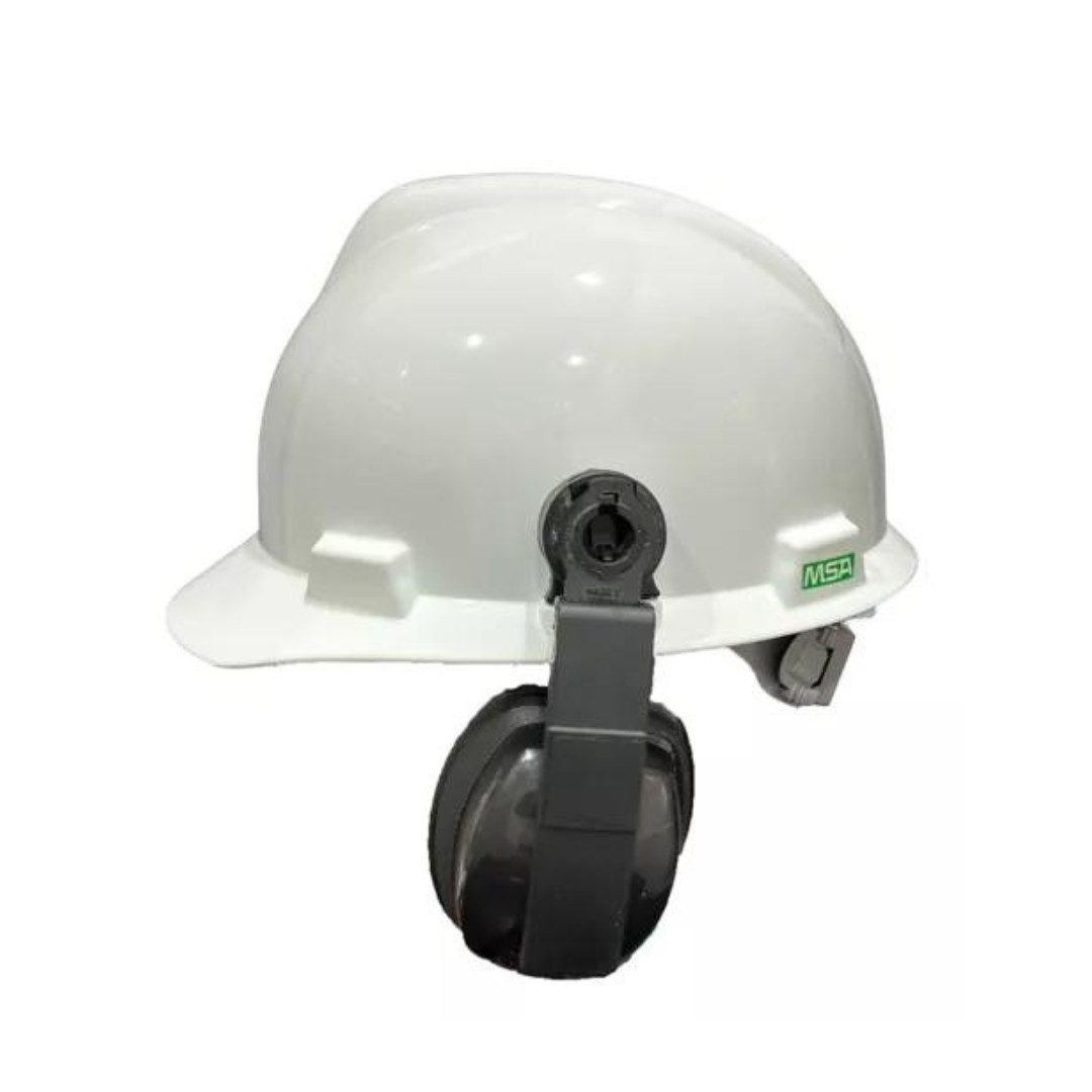 O abafador de ruídos para uso com capacete V-Gard Mark V Tipo Kit é composto por duas conchas de PEAD - Polietileno, duas espumas internas de PU - Poliuretano, garfo acoplador em PA6.6 - Poliamida com fibra e haste metálica em aço mola (somente na parte interna da haste), e atenuação de 14dB NRRsf. Confortável, apresenta excelente vedação e máxima proteção ao usuário. O design do encaixe da concha na haste proporciona giro de 360° da concha, possibilitando melhor ajuste e conforto. As conchas são fixadas a duas hastes plásticas móveis (basculantes) que se encaixam em fendas laterais do casco do capacete. O Kit protetor auditivo para uso com capacete é utilizado em conjunto com os capacetes MSA.Aprovado Para:PROTEÇÃO DO SISTEMA AUDITIVO DO USUÁRIO CONTRA NÍVEIS DE PRESSÃO SONORA SUPERIORES AO ESTABELECIDO NA NR 15, ANEXOS I E II