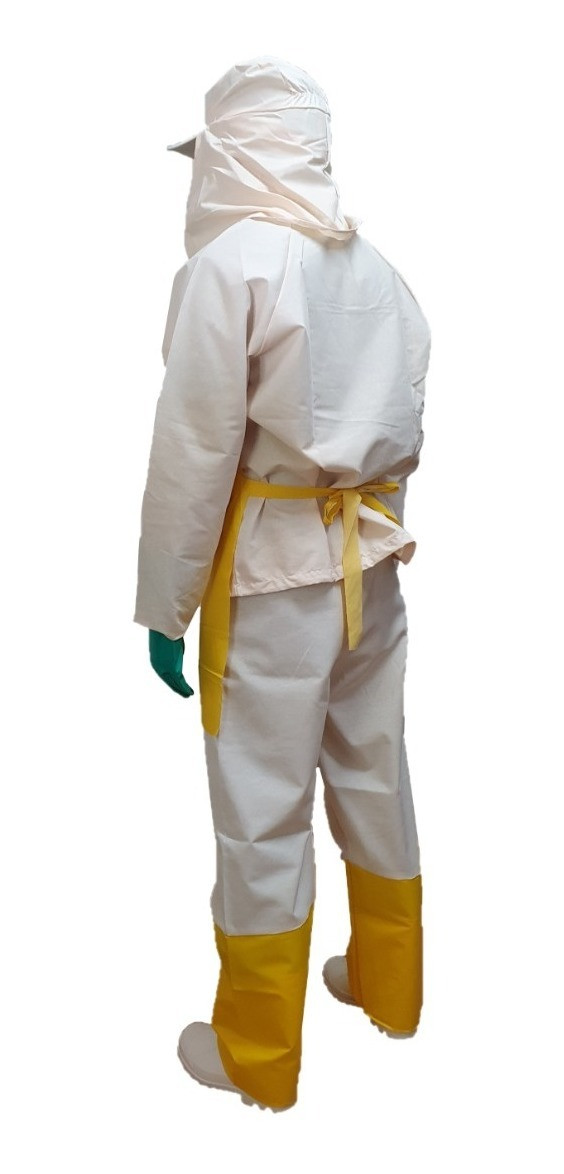 Conjunto confeccionado em tecido misto (46% algodão / 54% poliéster), com tratamento hidro-repelente para 40 lavagens, composto por:- Blusão- Calça- Avental- Boné Árabe