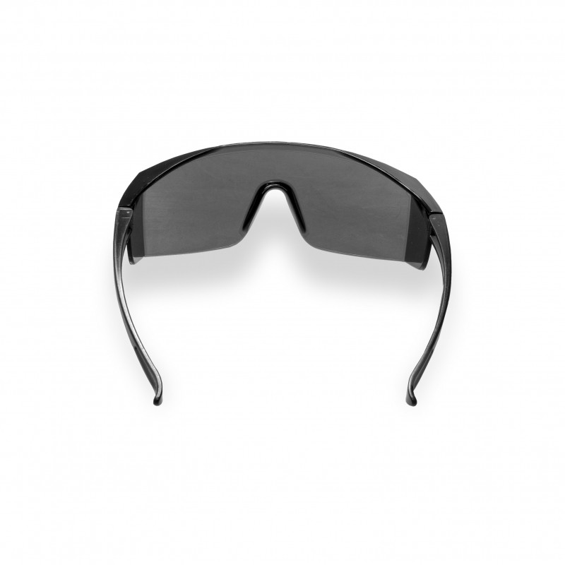Confortável, reforço na borda superior da armação, lente com curvatura lateral que aumenta o nível de proteção.